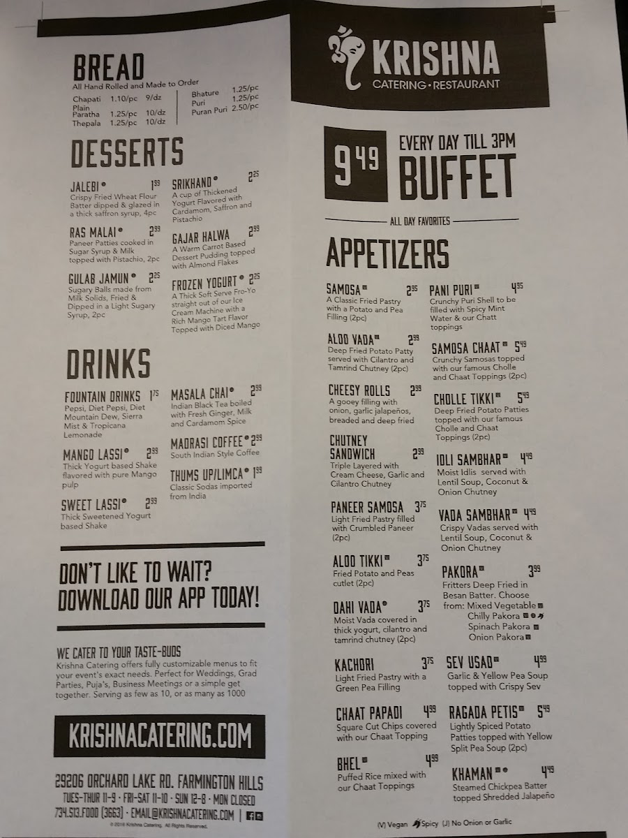 Welcome to Krishna Catering & Restaurant, a hidden gem located in Farmington Hills, MI, revered for its authentic Indian cuisine. The menu is a delightful journey through India’s rich culinary landscape, featuring a variety of dishes that tantalize the taste buds.